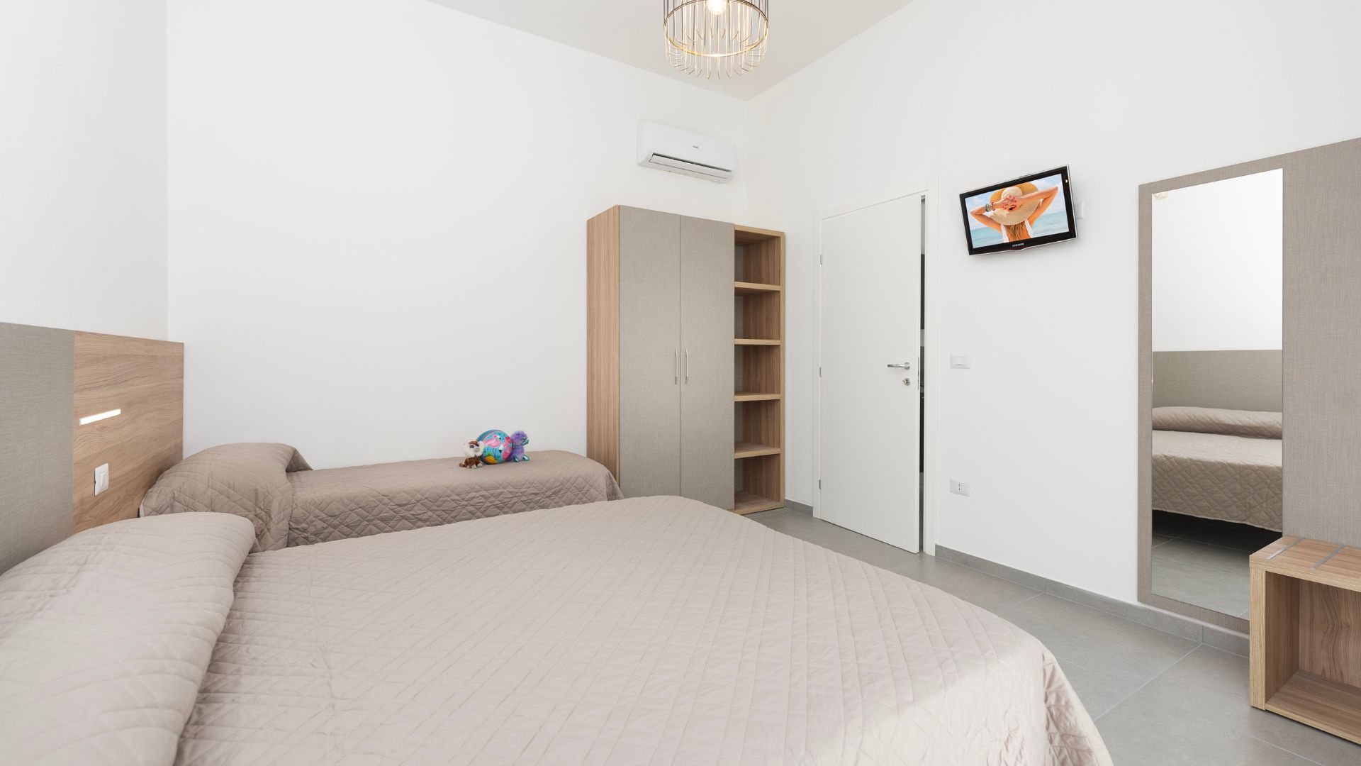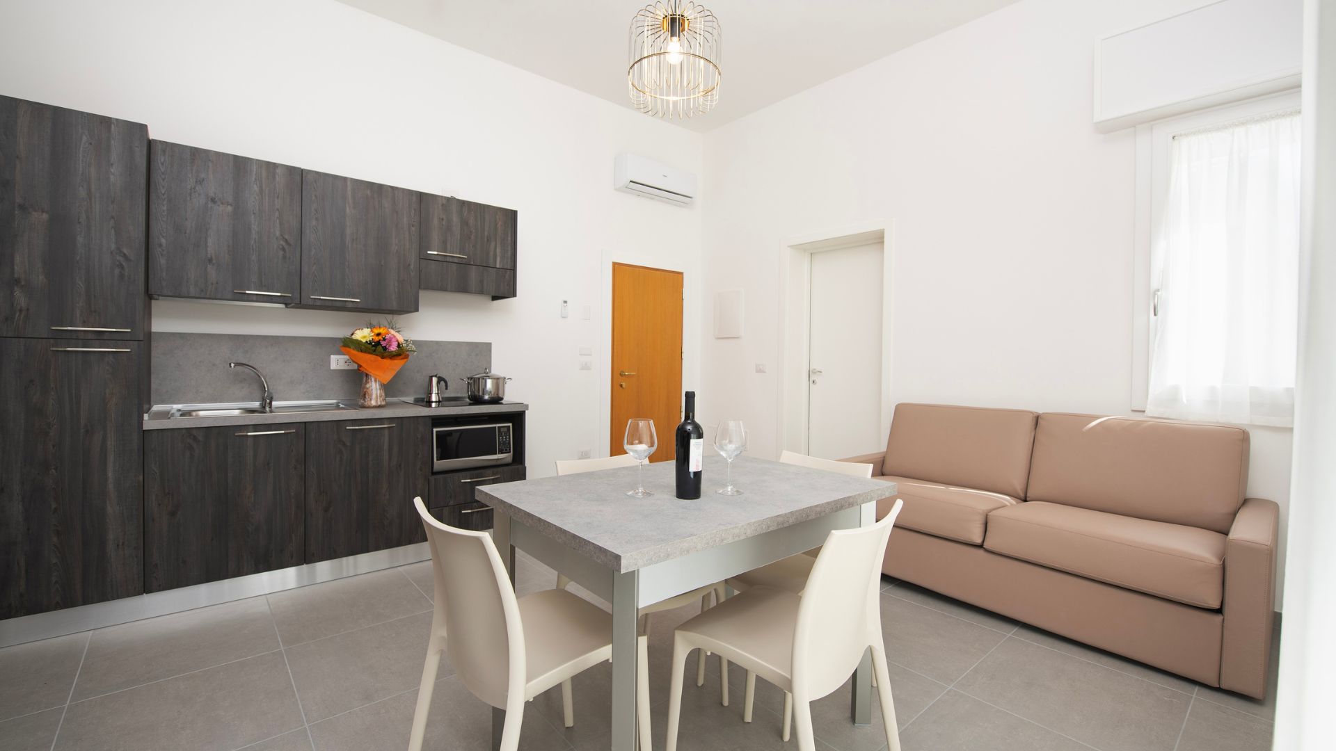 Il comfort raddoppia. Il nostro Bilocale è la scelta perfetta per chi cerca la giusta divisione tra zona giorno e zona notte senza rinunciare allo stile. Con i suoi 42 mq di luce, offre un ampio soggiorno con cucina e divano letto matrimoniale, separato dalla camera principale. Il grande terrazzo privato diventa il cuore della vostra estate: il luogo ideale per colazioni lente e serate sotto le stelle di Cervia.